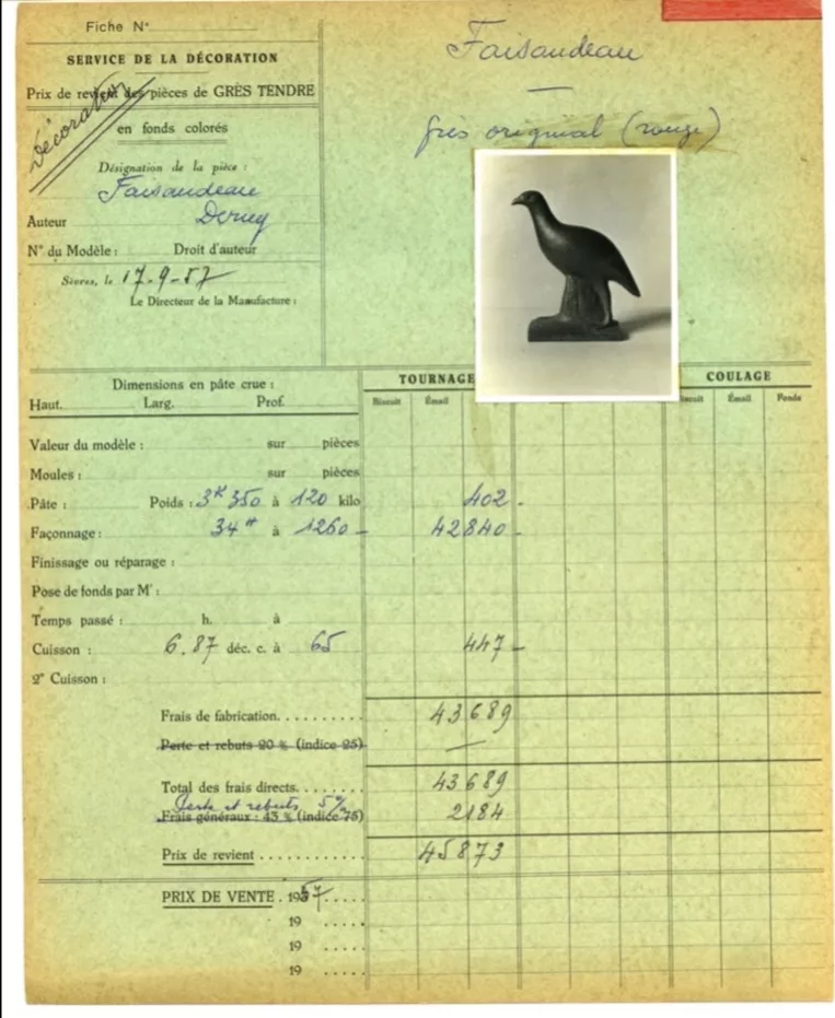 Manufacture Nationale de Sèvres – La fiche d’une légère variante (socle)